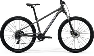 Välkommen in i världen av MERIDA hardtail-mountainbikes. Vår senaste TFS-aluminiumram bygger på decennier av erfarenhet inom ramkonstruktion och har fått uppdaterad geometri som förbättrar stigprestandan utan att tumma på mångsidigheten. Den 100 mm SR Suntour-dämpade gaffeln kombineras med smidiga 27,5″-hjul som effektivt jämnar ut ojämnheter. Shimano-skivbromsar och ett 2×7-växelsystem ger pålitlig och trygg prestanda – perfekt för dig som vill ha en stabil och lättkörd cykel både på och vid sidan av stigen.